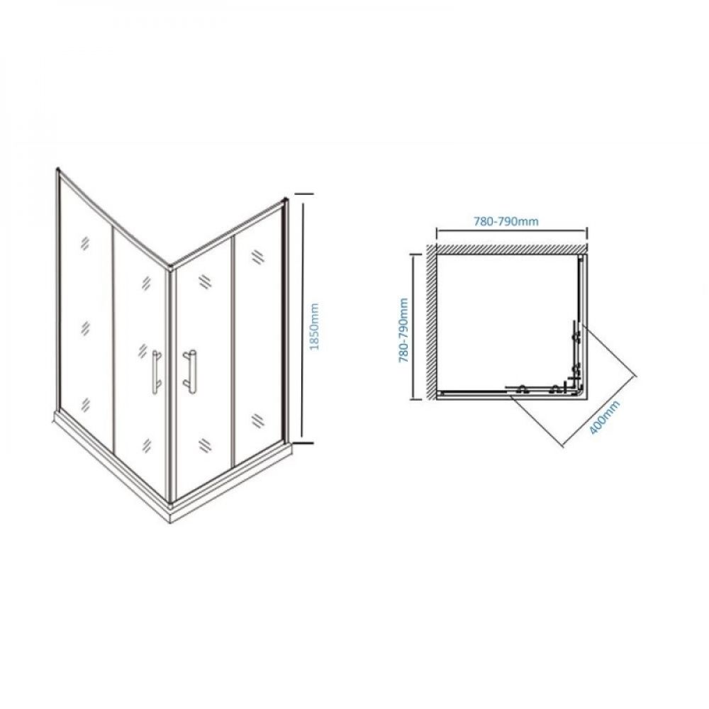 Dimenzija kabine: 80×80 cm visina kabine: 185 cm debljina stakla: 6 mm širina ulaza: 40 cm otvaranje: klizno vrsta stakla: kaljeno, mat materijal profila: aluminijum boja profila: silver, sjaj.