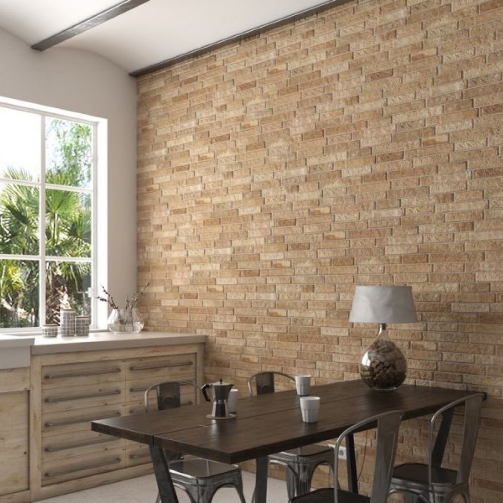 Gres porcelanska glazirana rektificirana za unutrašnje i spoljašnje oblaganje zidova. Mat pločica, imitacija cigli, braon, narandžaste boje. Zidna pločica, za postavljanje unutra ili napolje. Blago je reljefna,