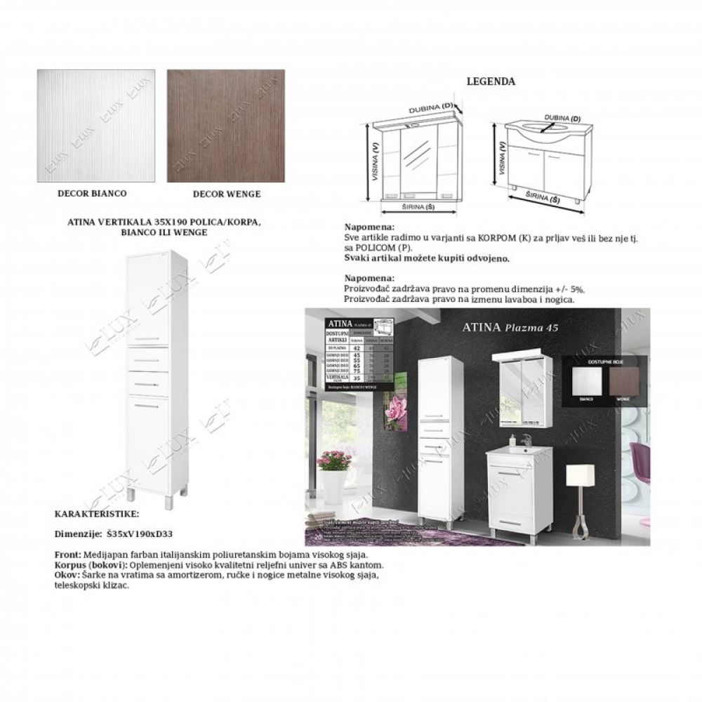 ATINA bianco vertikala 35x190 - polica
