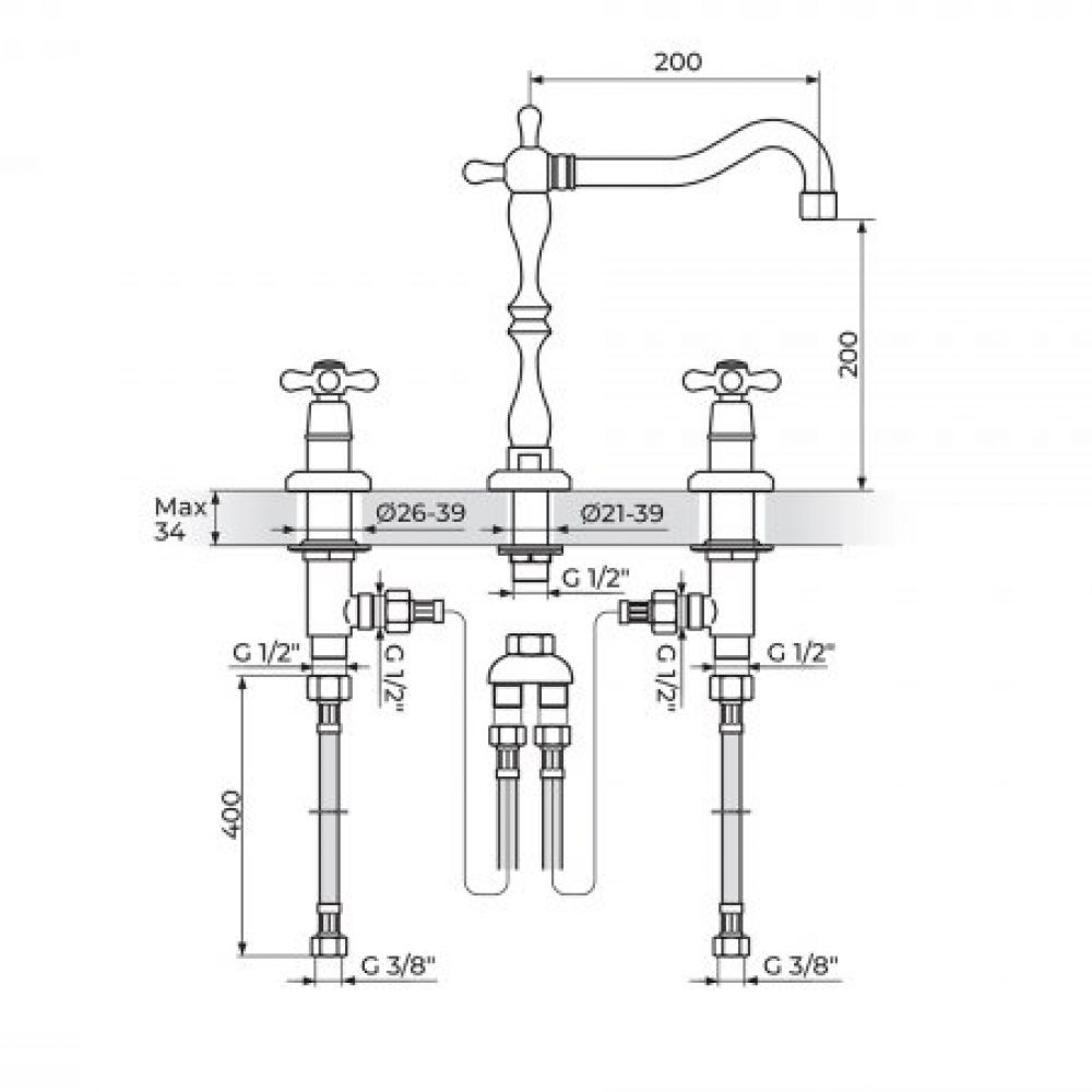 BRONTEE NB20101 Baterija sa tri otvora Roma izliv