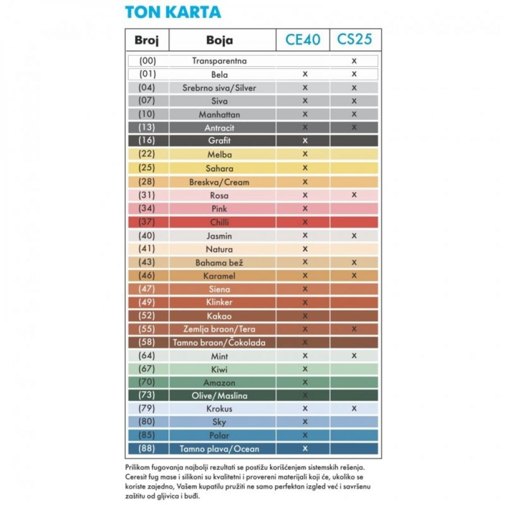 Vodoodbojno, fleksibino sredstvo za fugovanje na bazi cementa za širine fuga do 8 mm. Karakteristike: vodootporna i vodoodbojna fleksibilna otporna na ogrebotine pogodna za otvorene i zatvorene prostore odlično prianja pogodna za sisteme sa podnim grejanjem.