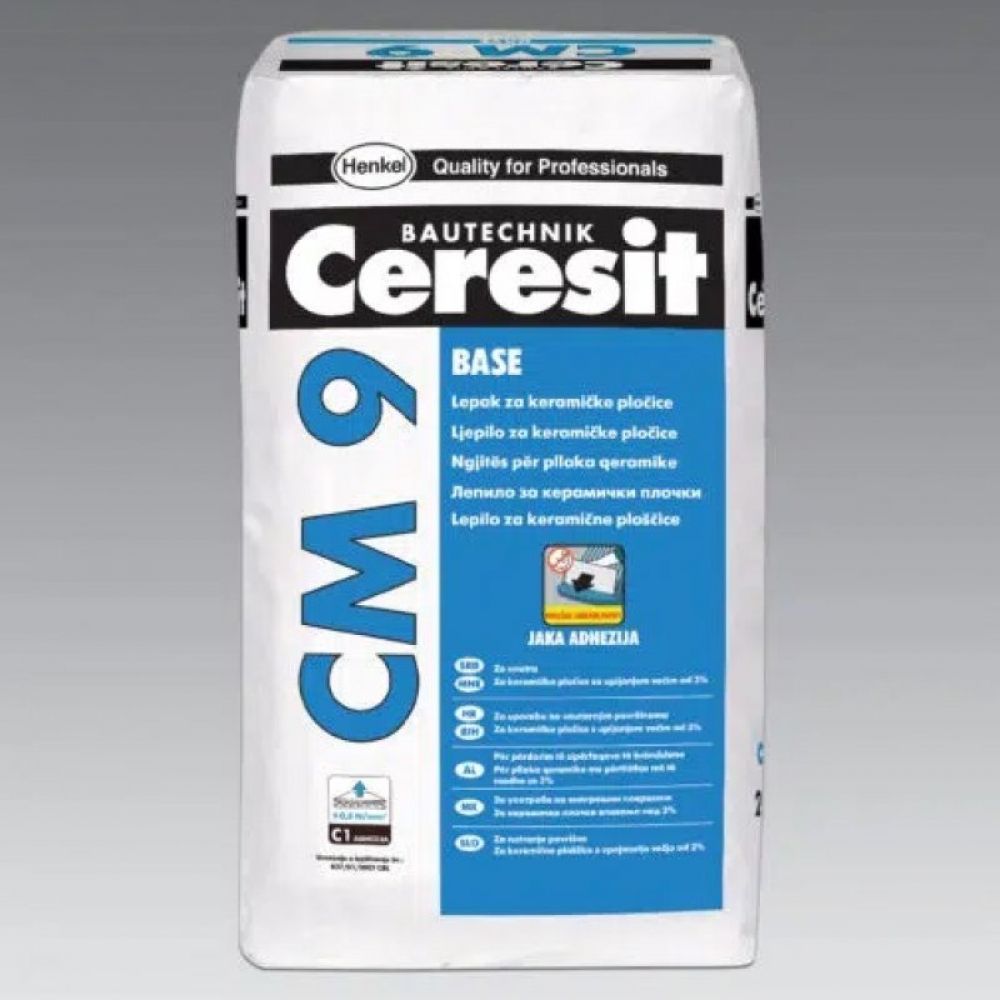 CM 9 se nanosi na sve čvrste, nosive, čiste, i suve podloge bez rastvorljivih sastojka. Dobro uklonite tragove ulja, pršinu i ostalo. Moguća udubljenja do 1 cm mogu biti popunjena sa CM 9 jedan dan pre lepljejna. Sledeće površine je portebno premazati prajmerom pre nanošenja CM 9: porozne podloge, beton, gipsane ploče. Ostavite prajmer da se osuši od 4 do 12 časova. Pred premaz nije potreban za sledeće površine: zidove bojene vodenim bojama, asfalt beton, postojeće obloge od prorodnog kamena. Nanošenje CM 9 zamešajte u čistoj vodi bez grudvica. Zatim sačekajte 5 minuta, pa promešajte lepak još jedanput. Obratite pažnju na vreme stvaranja kore koja iznosi od 15v do 20 minuta. Upotrebite nazubljnu gletericu, tako da je minimum 65 % površine keramičke pločice u dodiru sa lepkom. Pločice postavite tako da fuge budu široke od 2 do 15 mm, zavisno od radnih uslova i veličine ploča. Nakon 24 časa dozvoljeno je fugovanje. Višak lepka možete uklonti vodom, a čvrsle delove mehaničkim putem.
