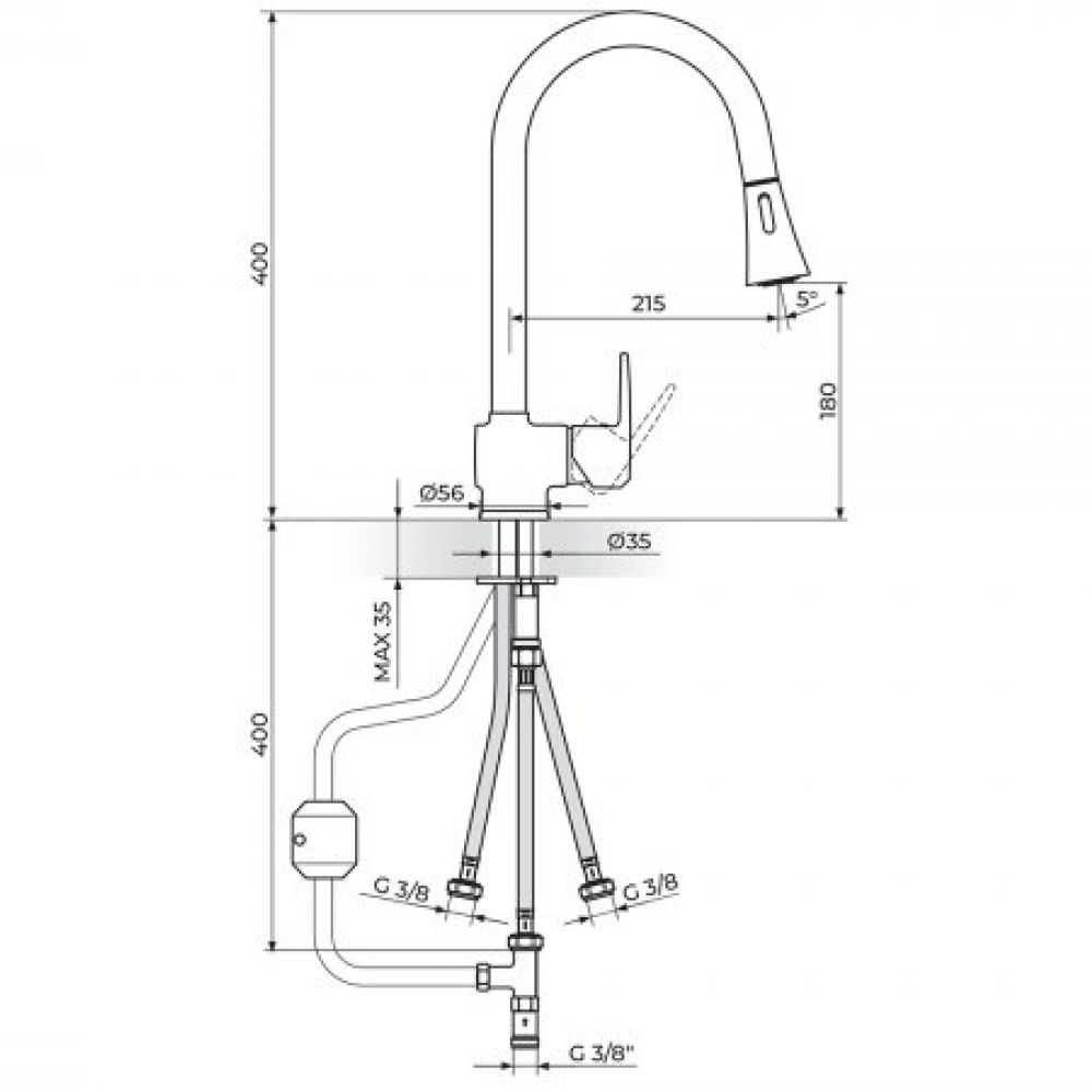TEHNIČKE KARAKTERISTIKE Jednoručna baterija Montiranje na jedan otvor Otvorena veza bojler-baterija Smanjeni protok 3 - 5 lit/min Usmerivač NEOPERL® NEOSTRAHL® FS Dripless - PPU24 NEOPERL® GLIDEFLEX izvlačno tuš crevo - PGC385JC Keramički mešač KEROX® 35 NDO HWS - PKM35AND Povlačni teg 400gr Pokretni izliv 360° NEOPERL® Nepovratni ventil INOX set za pričvršćenje IMQ sertifikovana fleksibilna priključna creva Klasa bučnosti I