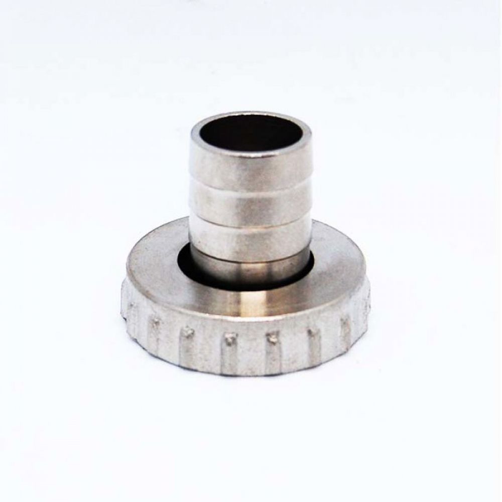 Metalni holender za slavinu baštensku sa gumicom. Za priključenje baštenskog creva na baštensku česmu pomoću šelne.