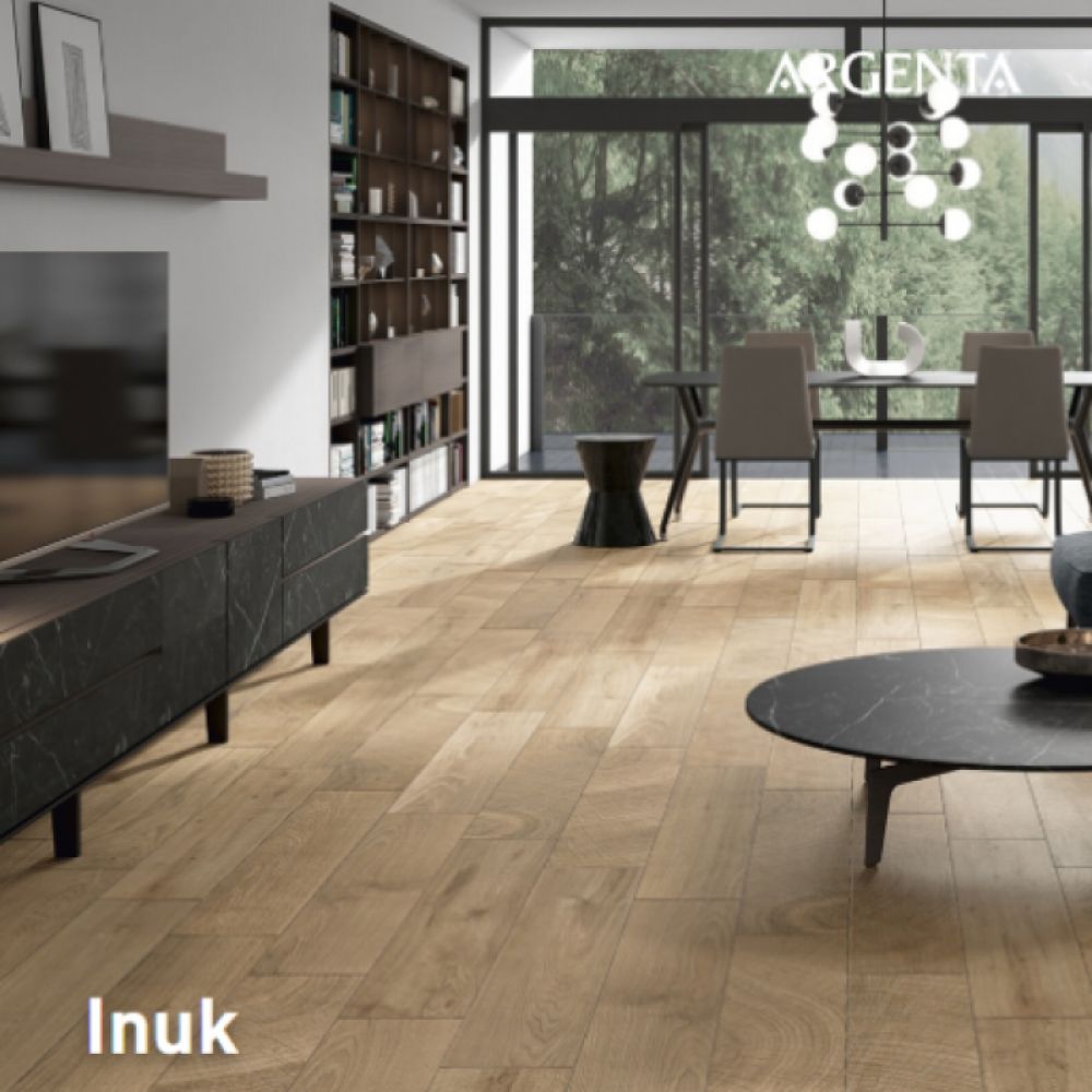 Inuk je inspirisan poprečnim presekom stabala drveća, kombinujući različite šare u pločicama od porcelana sa nazubljenom površinom, čineći ovu seriju potpuno jedinstvenim i prepoznatljivim izborom. Sa svojim formatom 23×120 cm, mat završnom obradom, pedantno izrađenim dizajnom i teksturiranom površinom, ova porcelanska pločica dočarava realizam rezanog drveta, a i dalje je jednostavan za održavanje. Širok spektar boja (dimna, siva, prirodna, med) čini ovu seriju neprocenjivim resursom za projekte enterijera koji žele da donesu osećaj topline.