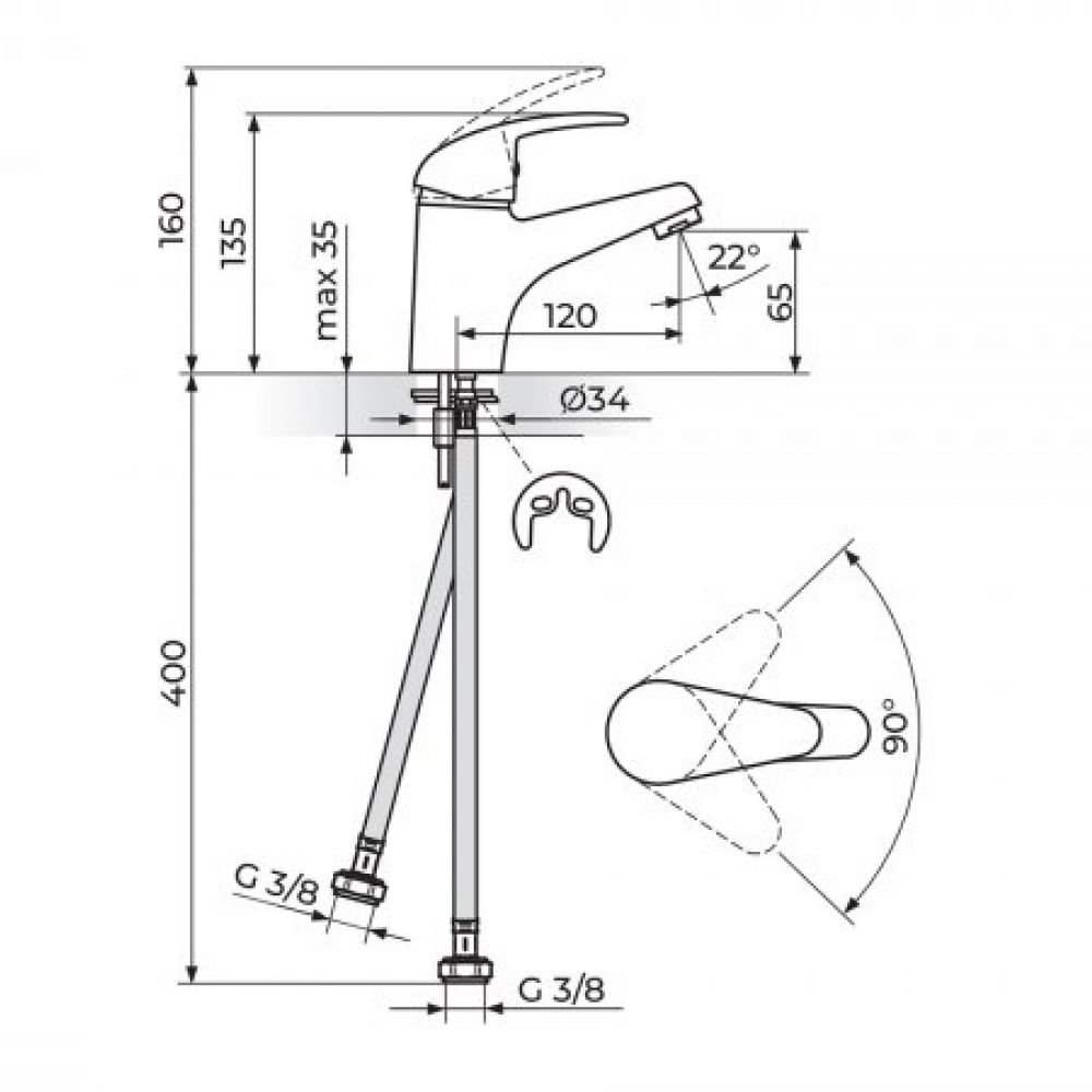 TEHNIČKE KARAKTERISTIKE Jednoručna baterija Montiranje na jedan otvor Klasa protoka Z - 7 lit/min NEOPERL® PERLATOR® HONEYCOMB Keramički mešač KEROX® 40 HWS INOX set za pričvršćenje IMQ sertifikovana fleksibilna priključna creva Klasa bučnosti I