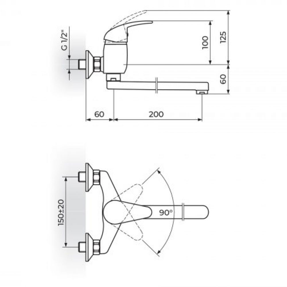 TEHNIČKE KARAKTERISTIKE Jednoručna baterija Zidna montaža Klasa protoka Z - 7 lit/min NEOPERL® PERLATOR® HONEYCOMB Keramički mešač KEROX® 40 HWS Heavy Duty ekscentar kolena Hromirane rozete Pokretni izliv 200mm Klasa bučnosti I