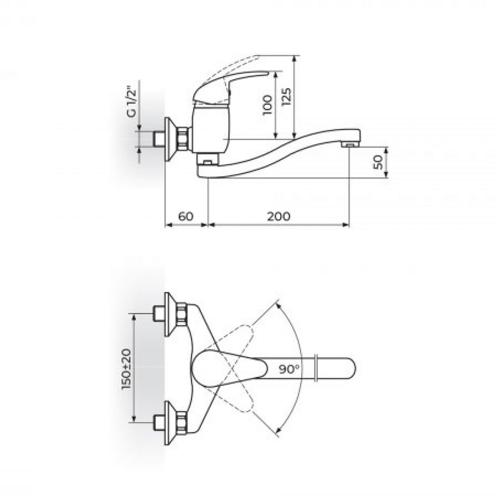 TEHNIČKE KARAKTERISTIKE Jednoručna baterija Zidna montaža Klasa protoka Z - 7 lit/min NEOPERL® PERLATOR® HONEYCOMB Keramički mešač KEROX® 40 HWS Heavy Duty ekscentar kolena Hromirane rozete Pokretni izliv 200mm Klasa bučnosti I