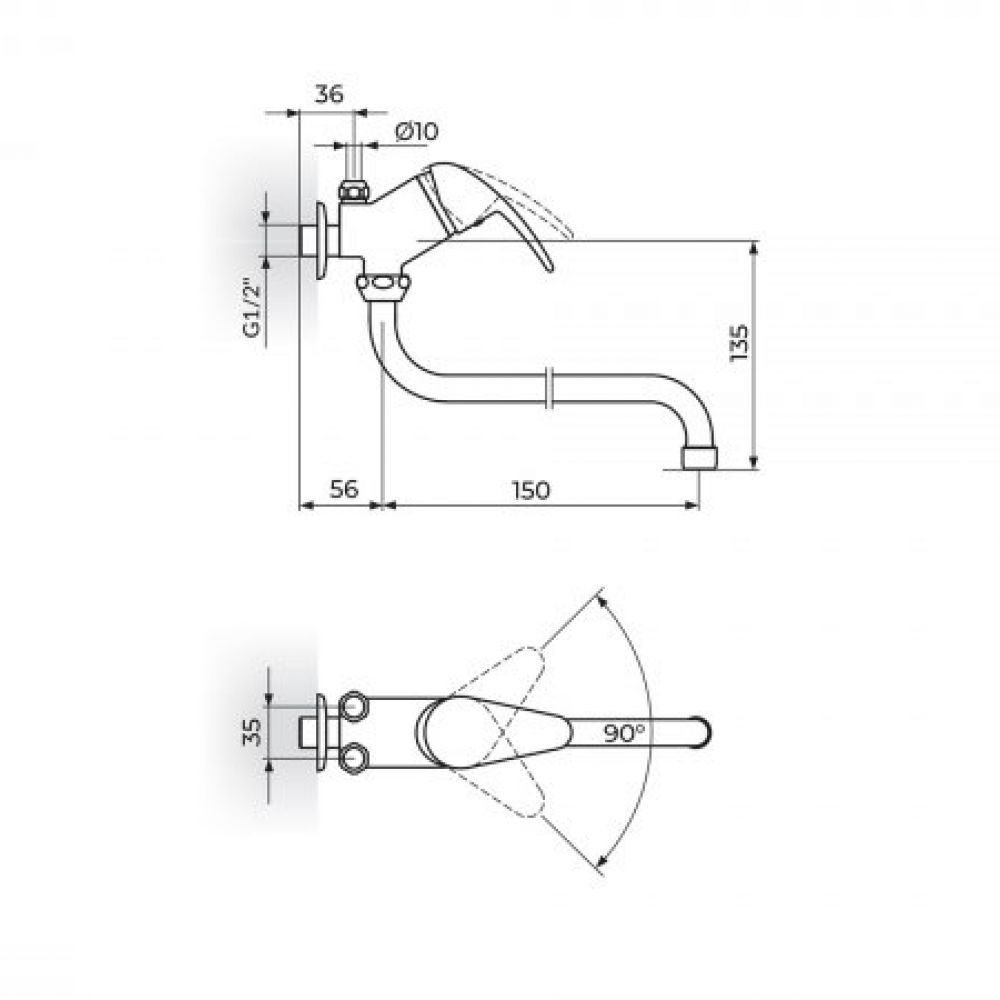 TEHNIČKE KARAKTERISTIKE Jednoručna baterija Zidna montaža Otvorena veza bojler-baterija Smanjeni protok 3 - 5 lit/min Usmerivač NEOPERL® NEOSTRAHL® Keramički mešač KEROX® 40 NDO HWS Pokretni izliv 150mm Hromirana rozeta Klasa bučnosti II