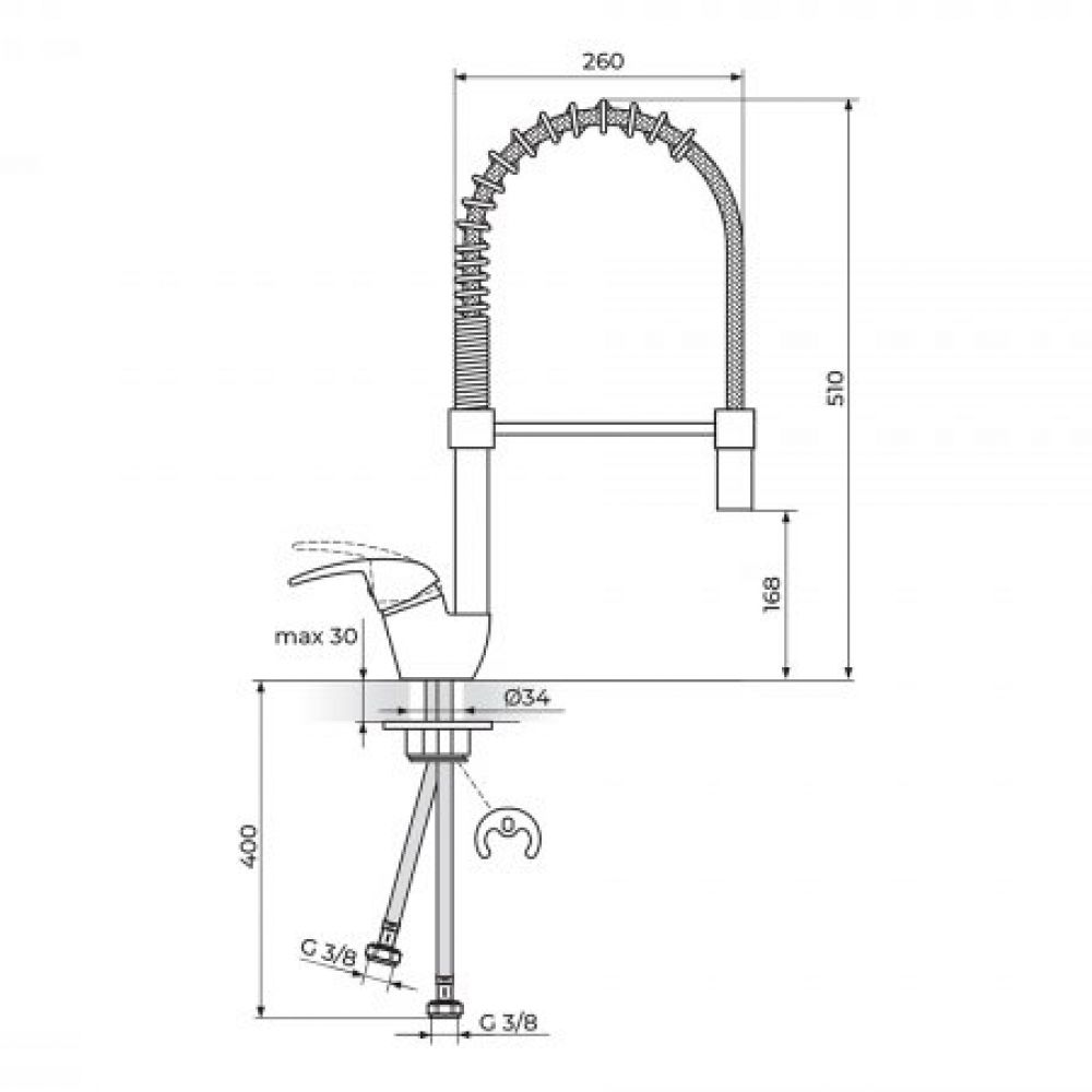 TEHNIČKE KARAKTERISTIKE Jednoručna baterija Montiranje na jedan otvor Klasa protoka Z NEOPERL® PERLATOR® HONEYCOMB Keramički mešač KEROX® 40 HWS FLEXibilni izliv sa oprugom Pokretni izliv 360° INOX set za pričvršćenje IMQ sertifikovana fleksibilna priključna creva Klasa bučnosti I