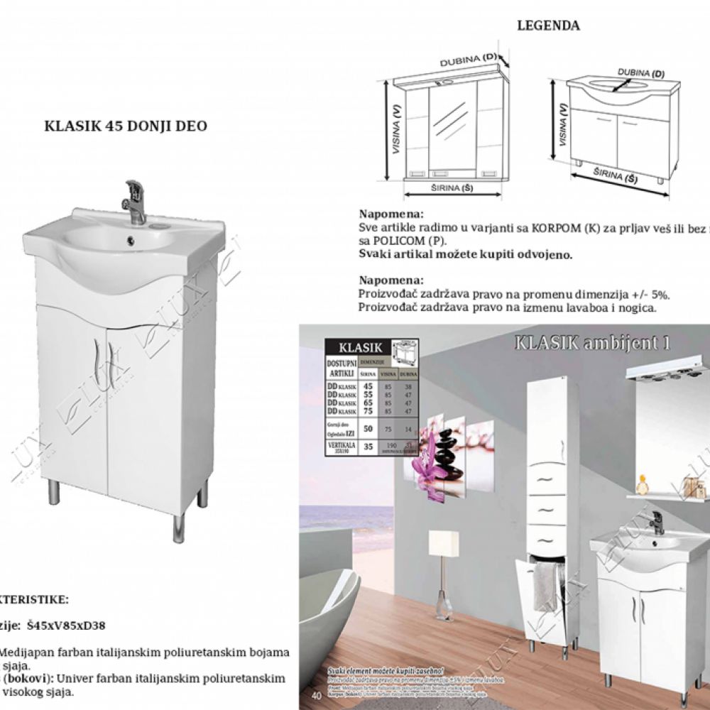 FRONT: MEDIJAPAN FARBAN ITALIJANSKIM POLIURETANSKIM BOJAMA VISOKOG SJAJA. KORPUS (BOKOVI): UNIVER FARBAN ITALIJANSKIM POLIURETANSKIM BOJAMA VISOKOG SJAJA. PROIZVOĐAČ: LUX CERAMICA, MLADENOVAC