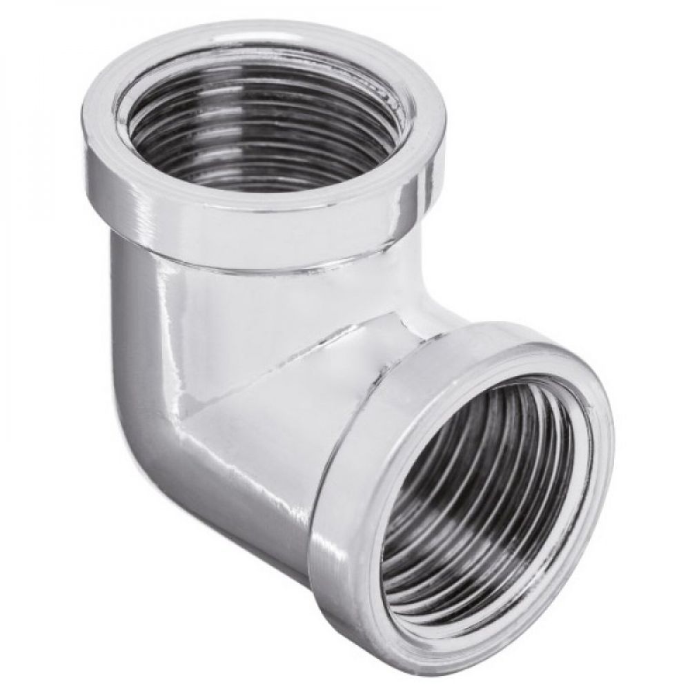 Hromirano koleno sa ženskim navojcima. Koleno omogućuje povezivanje dve cevi u sistemu cevi pod uglom od 90 stepeni. Ženski navojci omogućuju primenu u različitim sistemima cevi.