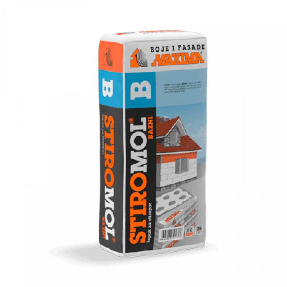 STIROMOL Bazni od 25 kg dodati na 5,5–6 L vode i mešati do stvaranja homogene mase bez grudvica. Sačekati 10 minuta, pa ponovo intenzivno izmešati. Ovako pripremljena masa spremna je za ugradnju i mora se utrošiti u roku od 2 sata. STIROMOL Bazni nanositi na termoizolacione ploče (pokrivnost lepkom min. 40%), pa ih pritiskanjem lepiti na čvrstu i čistu podlogu. Na zalepljene termoizolacione ploče, nakon 2–3 dana, preporučujemo tiplovanje (6 kom/m²).