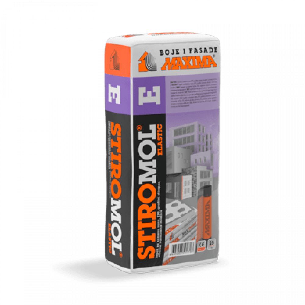 STIROMOL Elastic je jednokomponentni, visokoelastični, suvi tip građevinskog lepka, izrađen od hidrauličnih i sintetičkih veziva, uz dodatak specijalnih aditiva. Namenjen je za lepljenje i armiranje termoizolacionih ploča: stiropora, termosila, stirodura i kamene vune, na sve vrste mineralnih podloga.
