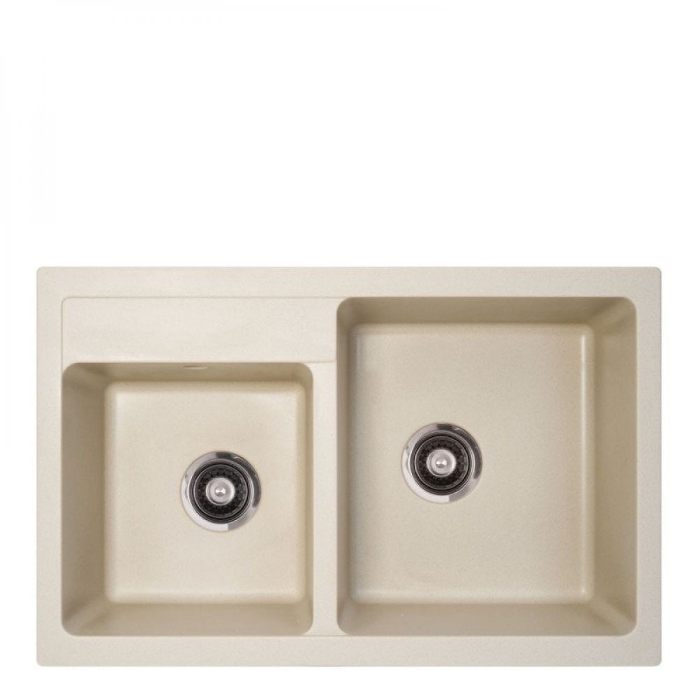 Dimenzije (mm): 780x500 Dubina korita (mm): 195/195 Mera ormarića (mm): 800 Boja: šampanj Dodatak uz sudoperu (mm): sifon Ø90