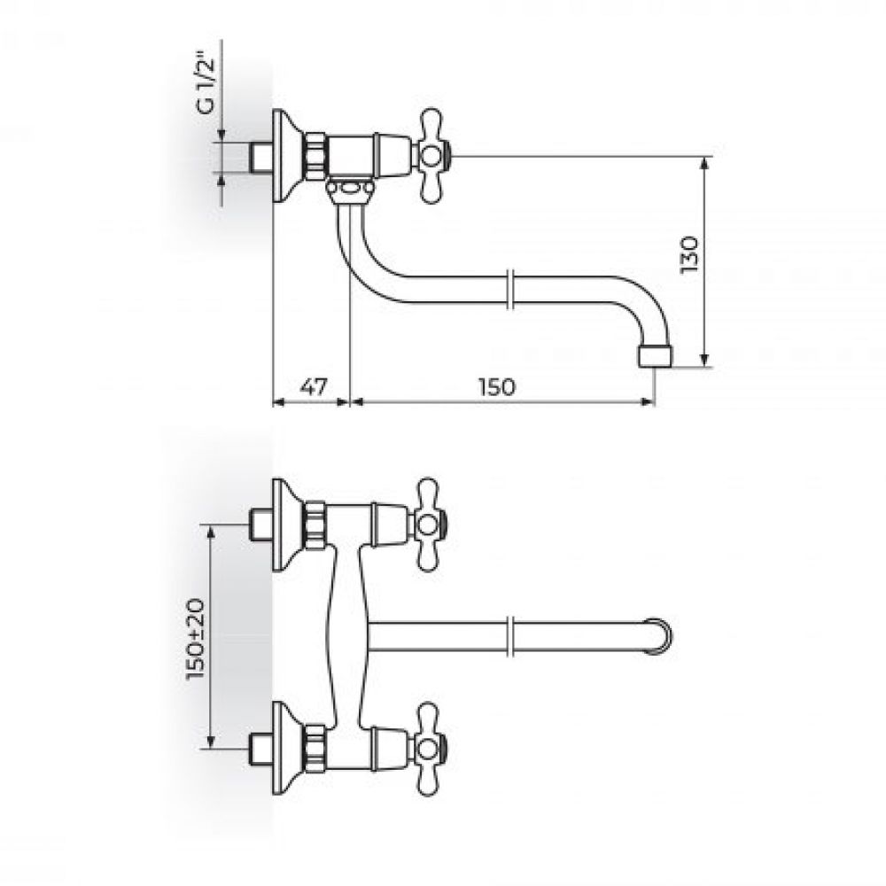 NOSTALGIJA N01114 Baterija za Sudoperu - Lavabo Izliv 140mm - s
