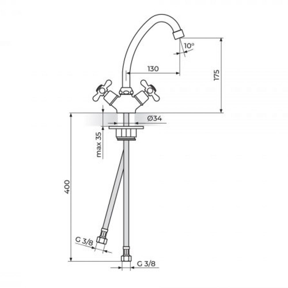 TEHNIČKE KARAKTERISTIKE Dvoručna baterija Montiranje na jedan otvor Klasa protoka S NEOPERL® PERLATOR® HONEYCOMB Flühs® LIFETIME keramički gornji delovi Metalni rukohvat Pokretni izliv 130mm INOX set za pričvršćenje IMQ sertifikovana fleksibilna priključna creva Klasa bučnosti I