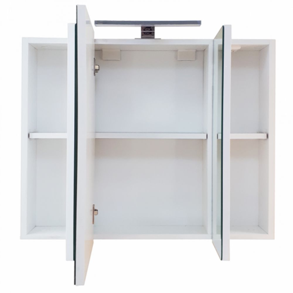 Ormarić sa ogledalom i rasvetom 75x69x15cm. Ogledalo izrađeno od MDF ploče sa ravnim površinskim sjajem i vrhunskim kvalitetom. Na ogledalu se nalazi LED lampa. Materijal: medijapan. Dimenzije: 75x69x15cm.