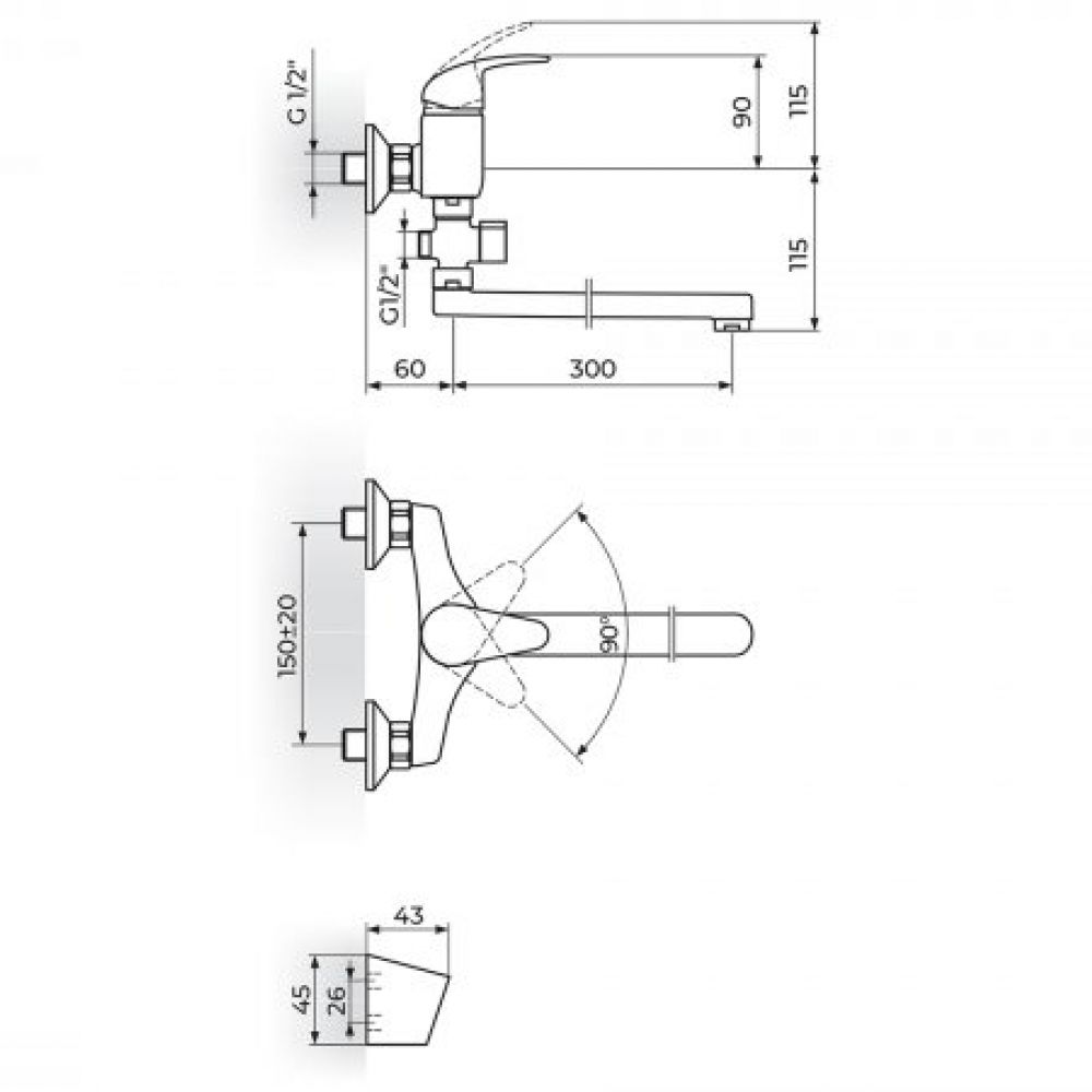 TEHNIČKE KARAKTERISTIKE Jednoručna baterija Zidna montaža Klasa protoka C -na izlivu Regulacija protoka do 5 lit/min na tušu NEOPERL® PERLATOR® HONEYCOMB Keramički mešač KEROX® 35 HWS Liveni izliv 300mm Ručni prebacivač za tuš Ručni tuš Duplo pleteno tuš crevo 1.5m Heavy Duty ekscentar kolena Hromirane rozete Klasa bučnosti II