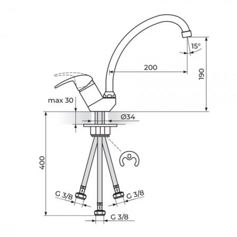 TEHNIČKE KARAKTERISTIKE Jednoručna baterija Montiranje na jedan otvor Otvorena veza bojler-baterija Smanjeni protok 3 - 5 lit/min Usmerivač NEOPERL® NEOSTRAHL® Keramički mešač KEROX® 35 NDO HWS Pokretni izliv 360° INOX set za pričvršćenje IMQ sertifikovana fleksibilna priključna creva Klasa bučnosti II