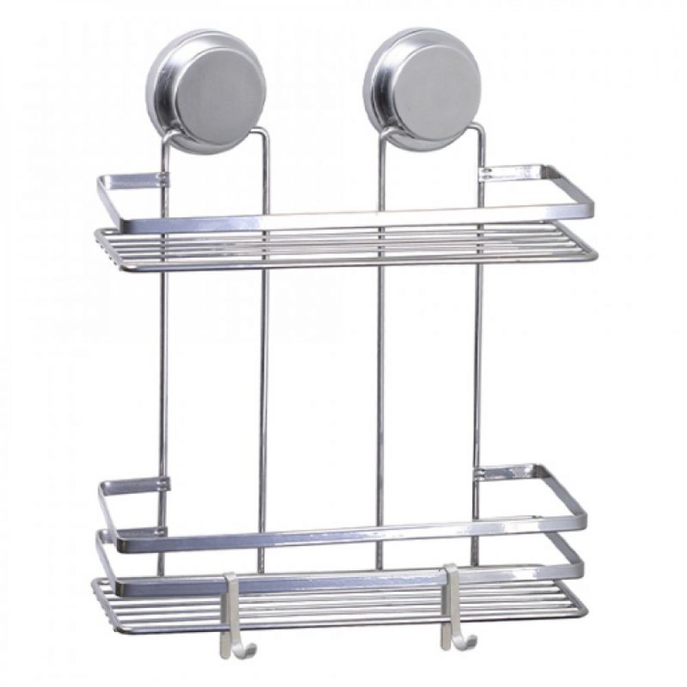 Kupatilska galanterija, polica za tuš kabinu, žičana dva nivoa odlaganja Boja hrom, metal, samolepljiva MagicFIX tehnologija omogućila je da galanteriju postavimo lepljenjem na površinu, bez bušenja ili bilo kakvog oštećenja pločica. Ukoliko ustanovimo da nam položaj galanterije nije odgovarajući, odlepimo nosaš i zalepimo galanteriju, postavimo, na mesto koje nam je prihvatljivije ergonomski. Jednostavnim postupkom pranja nosača vodom i sušenja i nosač je ponovo upotrebljiv. Nosivost je do 10kg. Zemlja porekla: TR