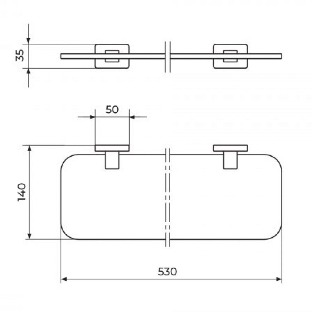 TEHNIČKE KARAKTERISTIKE Čvrsta konstrukcija Pričvršćivanje na zid Inox set za montažu Polica od peskarenog stakla Materijal izrade: Mesing Završna obrada: Hrom