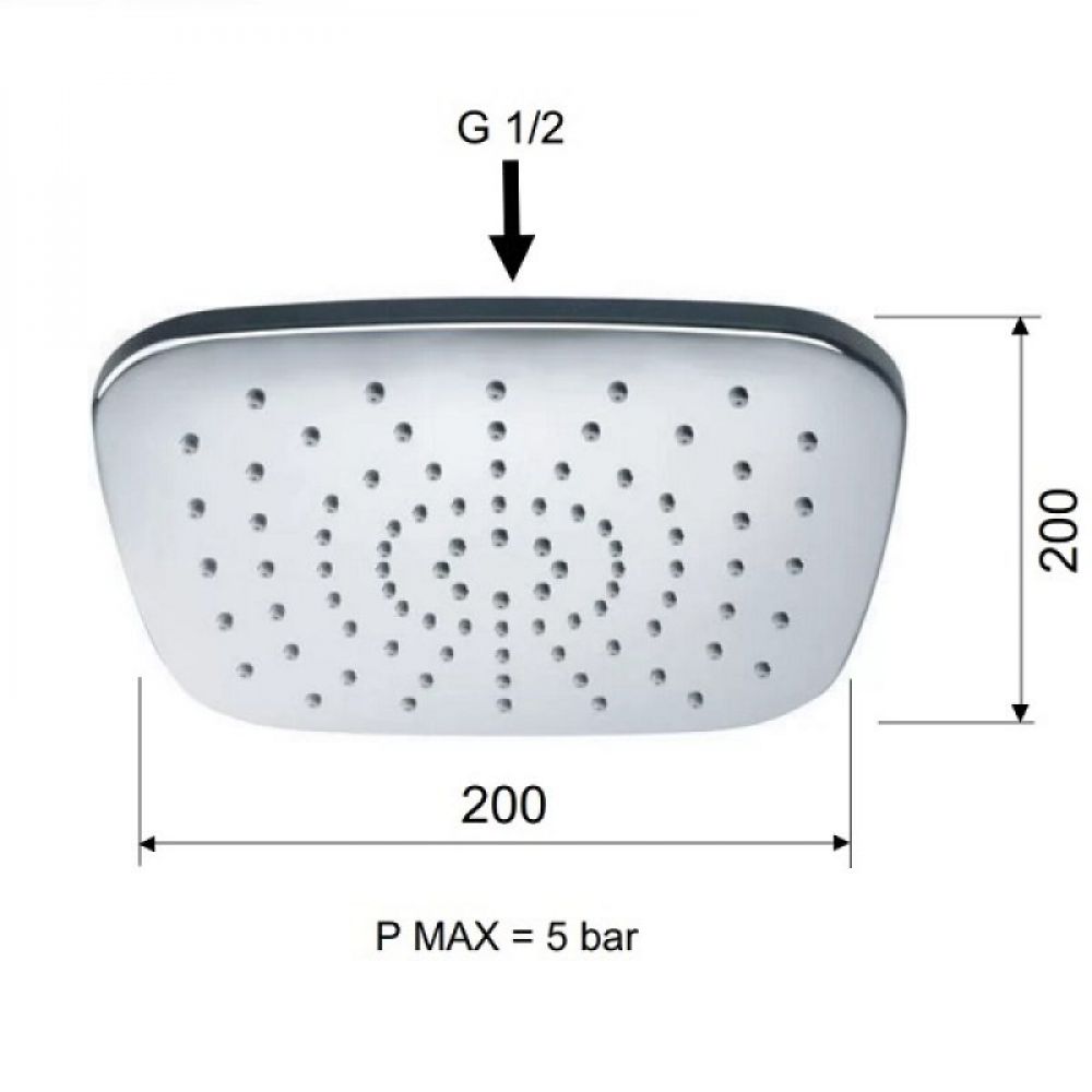 Tuš ruža kvadratnog oblika sa zaobljenim uglovima mlaznice 20×20 cm
