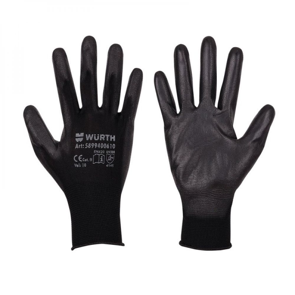 Tanke bešavne rukavice od poliestera, presvučene na dlanu finim slojem poliuretana. Pogodne za precizne poslove zbog svoje elastičnosti i dobrog prijanjanja na šake.