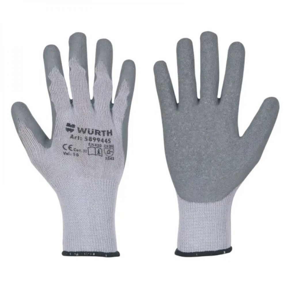 Pletene bešavne rukavice od petoslojne mešavine pamuka i poliestera, presvučene naboranim lateksom na dlanu. Meke i udobne rukavice koje odlikuje siguran hvat.