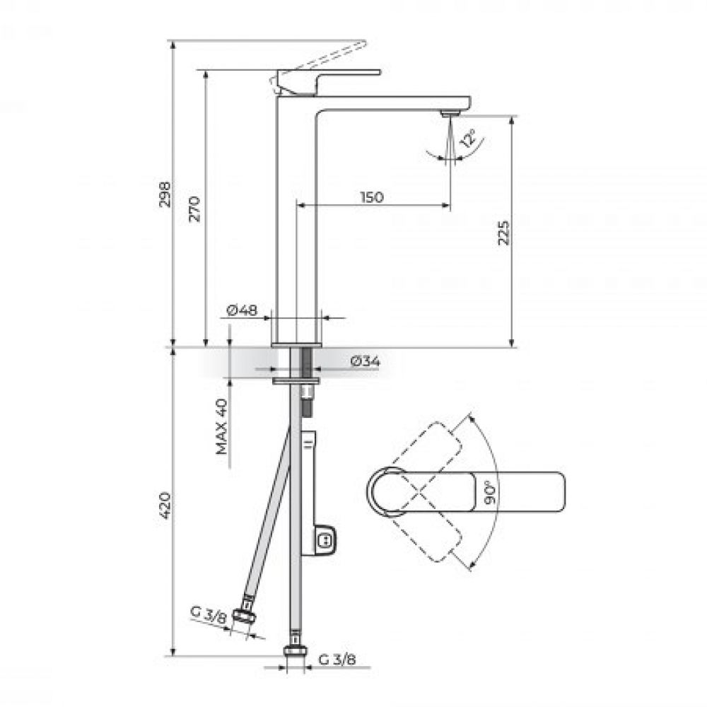 TEHNIČKE KARAKTERISTIKE Jednoručna baterija Minimalistički dizajn Telo od mesinga Hromirana završna obrada Montiranje na jedan otvor Klasa protoka Z - 7 lit/min NEOPERL® SLIMAIR® SLC® SSR® PPM24SA Keramički mešač CITEC® 25mm PKM25SA Set za pričvršćenje sa jednim vijkom NEOPERL® SPX® priključna creva FB50PX
