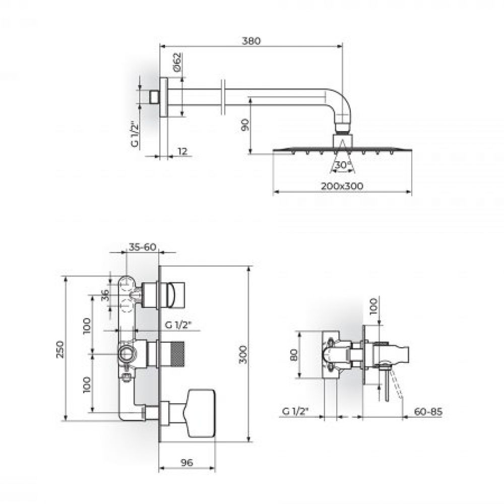 TEHNIČKE KARAKTERISTIKE Jednoručna baterija Minimalistički dizajn Telo od mesinga Hromirana završna obrada Uzidna baterija Keramički prebacivač Turn4 Tuš ruža 200*300mm PTRUSP16 Keramički mešač KEROX® 35mm PKM35A SILVERFLEX tuš crevo 170cm PGC170SF Tuš ručica 3 Funkcije PTR3C13