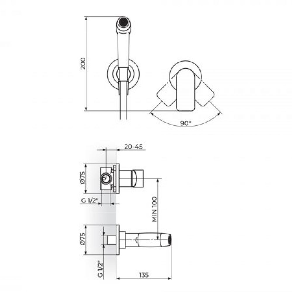 TEHNIČKE KARAKTERISTIKE Jednoručna baterija Minimalistički dizajn Telo od mesinga Hromirana završna obrada Uzidna baterija Keramički mešač KEROX® 35mm PKM35A SILVERFLEX tuš crevo 170cm PGC170SF Tuš ručica 2+2 Funkcije PTRISP2