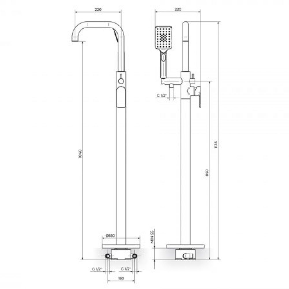 S2 BLACK 233109B stubna baterija za kadu sa ručnim tušem