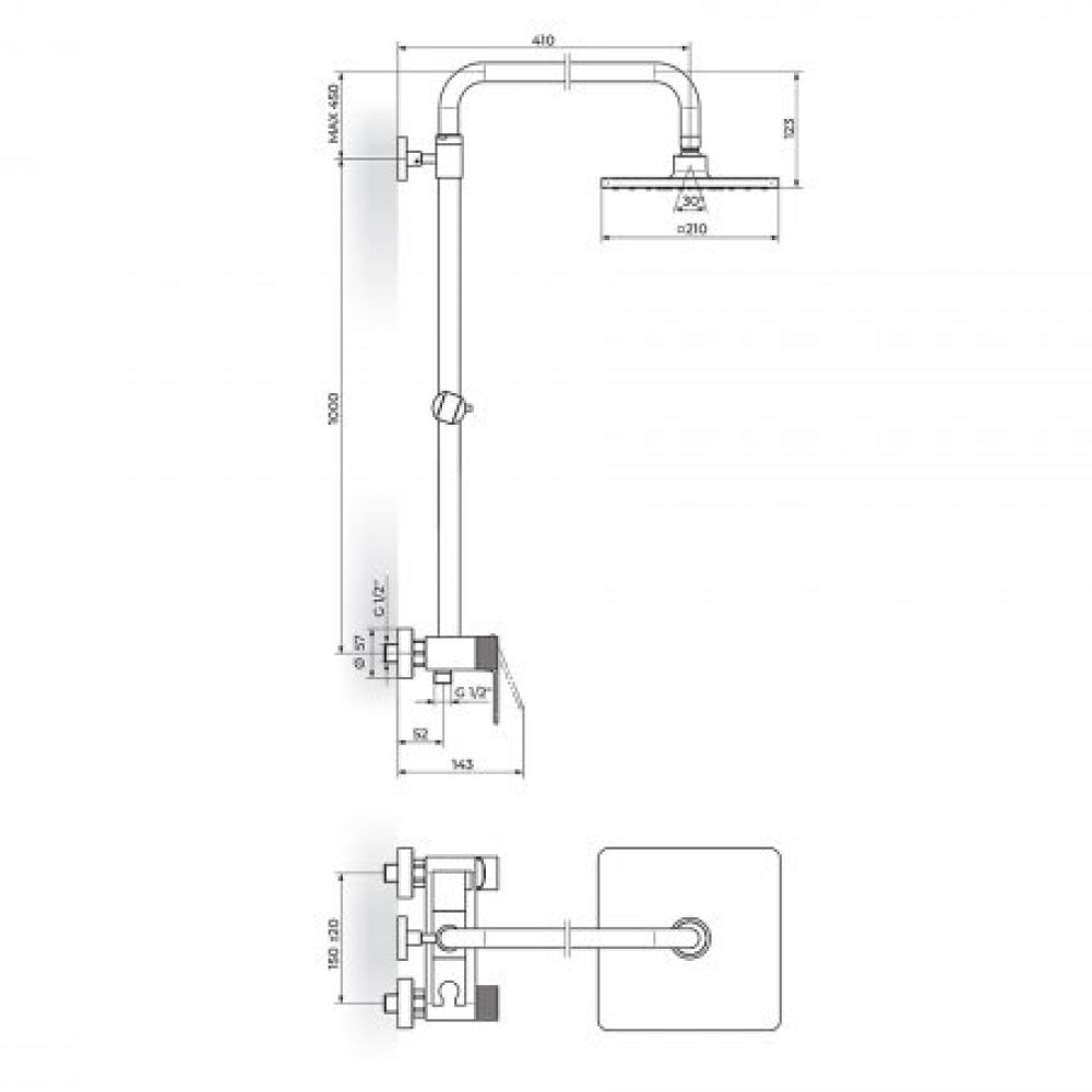TEHNIČKE KARAKTERISTIKE Jednoručna baterija Minimalistički dizajn Telo od mesinga Završna obrada - PVD Dark black Zidna montaža Keramički prebacivač 180° Tuš ruža 210x210mm PTRUSP5D Keramički mešač CITEC® 25mm PKM25SB DARKFLEX tuš crevo 150cm PGC150DF Tuš ručica 3 Funkcije PTR3C13D Protok max. 8lit/min - WaterCare