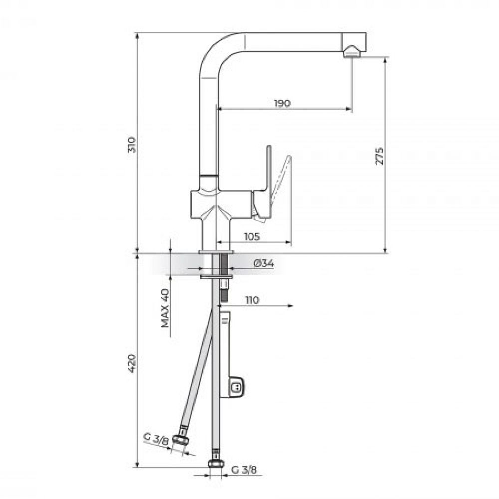 TEHNIČKE KARAKTERISTIKE Jednoručna baterija Minimalistički dizajn Telo od mesinga Završna obrada - PVD Dark black Fiksiranje na jedan otvor Keramički mešač CITEC® 25mm PKM25SC Mešač sa H-V pozicijom Set za pričvršćenje sa jednim vijkom Pokretni izliv 360° NEOPERL® SPX® priključna creva FB50PX
