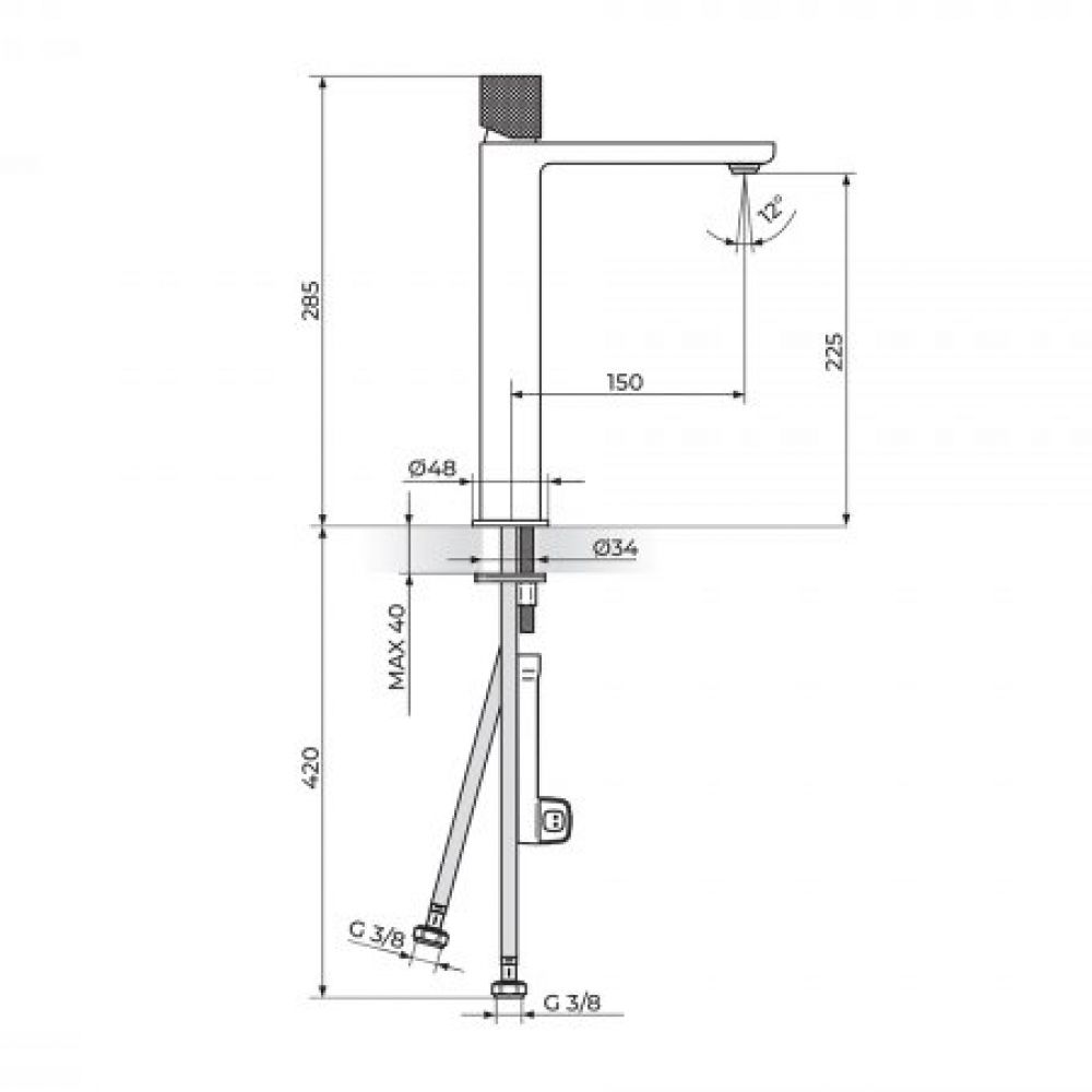 TEHNIČKE KARAKTERISTIKE Jednoručna baterija Minimalistički dizajn Telo od mesinga Završna obrada - PVD Dark black Montiranje na jedan otvor Klasa protoka Z - 7 lit/min NEOPERL® SLIMAIR® SLC® SSR® PPM24SA Keramički mešač CITEC® 25mm PKM25SA Set za pričvršćenje sa jednim vijkom NEOPERL® SPX® priključna creva FB50PX