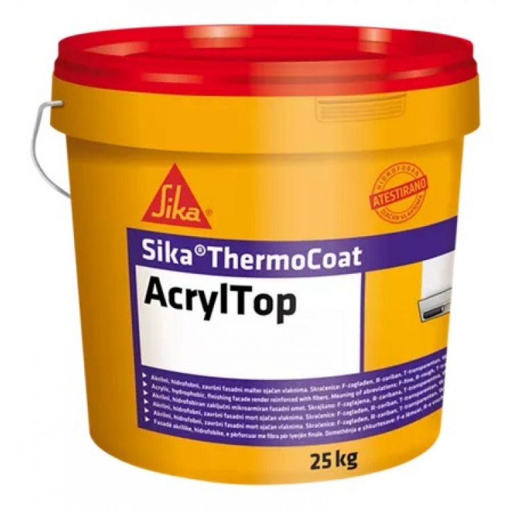 Sika® ThermoCoat Acryl Top je hidrofobni, silikonizirani, akrilni fasadni malter ojačan specijalnim vlaknima koji se koristi kao završni, dekorativni sloj u termoizolacionim sistemima. Proizvodi se u beloj boji, ali se može tonirati u neku od nijansi iz Sika® ton karte. Sika® ThermoCoat Acryl Top F-1.5 ima fini, zaglađeni završni izgled. Sika® ThermoCoat Acryl Top R-2.0 ima grublji, zaribani završni izgled.