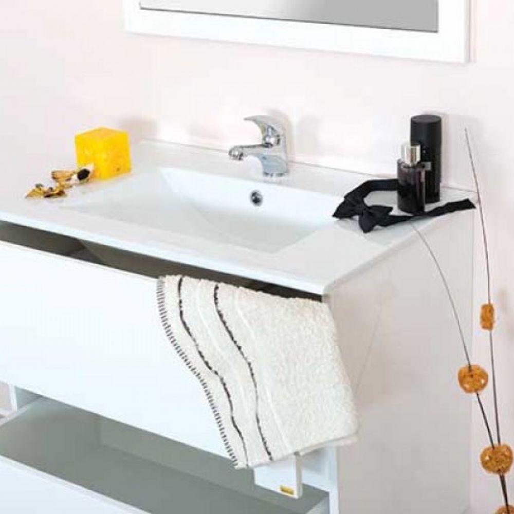 Toaletni ormarić sa umivaonikom. Ovaj model toaletnog ormarića postoji i u širini od 60 i 90 cm i u sivoj boji.