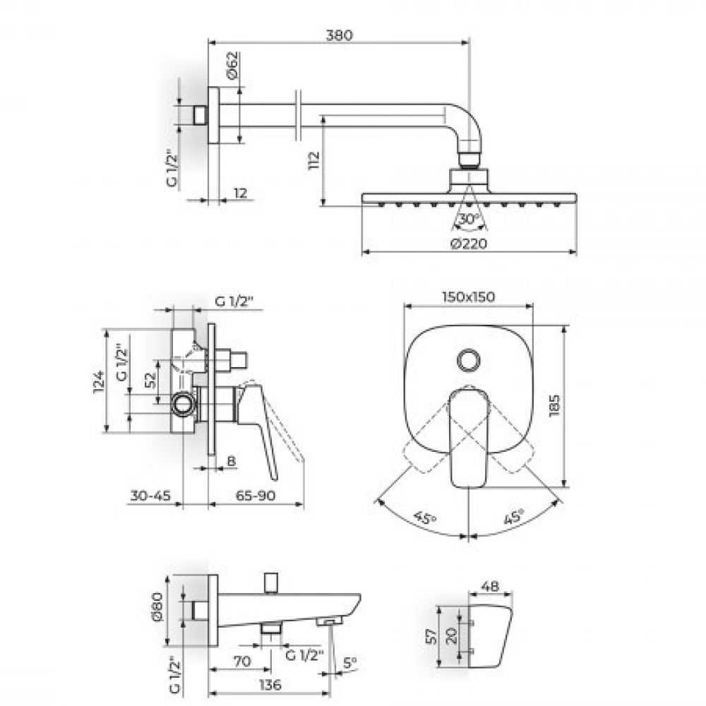 TEHNIČKE KARAKTERISTIKE Jednoručna baterija Uzidna montaža Masivna kontrukcija Automatski prebacivač Klasa protoka 9 lit/min Keramički mešač KEROX® 35 HWS - PKM35A Tuš ruža D.220 mm sa zglobom - PTRUSP7 Easy Clean STOLZ tuš ručica - PTREC11 STOLZ duplo pleteno tuš crevo 150 cm - PGC150KS Klasa bučnosti II