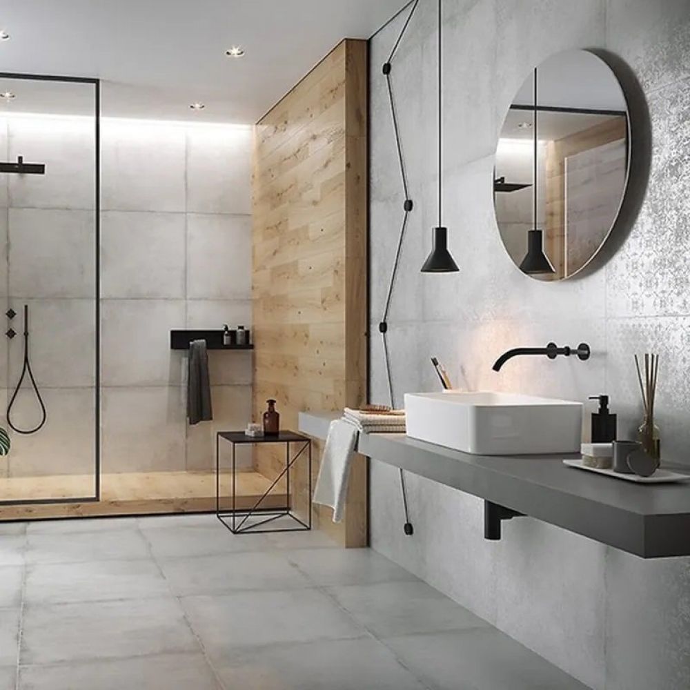 Ima mat, ravnu, površinu. Pločica je imitacija cementa i dekorativna