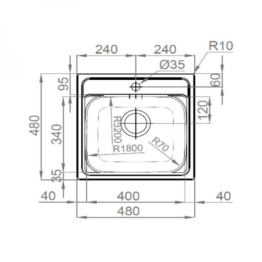Dimenzije: 480 x 480mm Dubina: 170mm Za korpus minimum: 600mm Čelik: 18/10 Tip instalacije: usadna Opremljena kompletnim sifonom