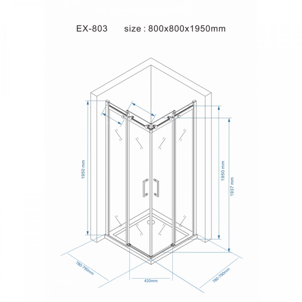 Tuš Paravan EX803 80x80x195/8mm Nano Easy Clean