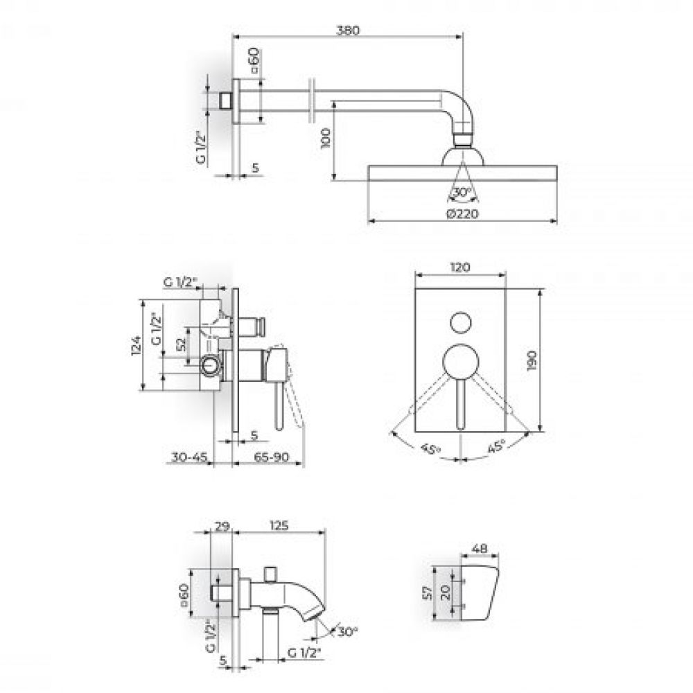 ZERRO JZ31701 uzidna baterija za tuš kadu sa uzidnim i ručnim tušem