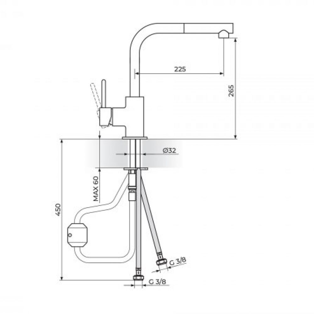 TEHNIČKE KARAKTERISTIKE Jednoručna baterija Montiranje na jedan otvor Klasa protoka S Keramički mešač KEROX® 35 HWS - PKM35A INOX set za pričvršćenje IMQ sertifikovana fleksibilna priključna creva Tuš ručica sa prebacivačem Pleteno izvlačno tuš crevo Klasa bučnosti I